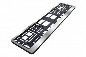 Для создания хромированной поверхности используется тиснение рамок фольгой. Данная технология позволяет наносить фольгу на всю поверхность рамки. На выбор есть несколько оттенков - серебро, золото или синий. Сама рамка изготовлена из прочного пластика. Она состоит из двух частей – основы, в которую вставляется номер, и планки, которая вставляется в нрижнюю часть рамки. Для установки рамки нужно отстегнуть планку, начиная с середины, зафиксировать рамку на автомобиле саморезами, вставить номер в рамку и прикрепить планку к рамке.